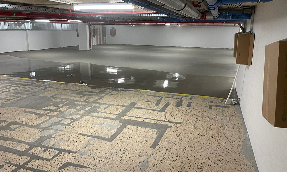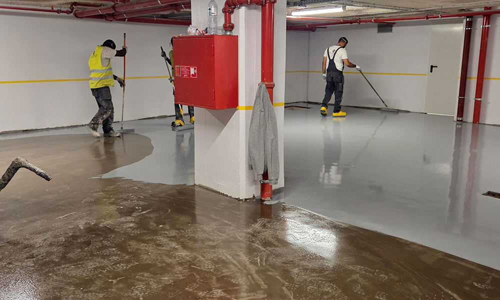 Las tres plantas del parking, con una superficie total de 1400 m², presentaban zonas muy deterioradas, irregularidades y pérdida de resistencia, lo que dificultaba la circulación y exigía una solución continua, duradera y rápida de ejecutar.