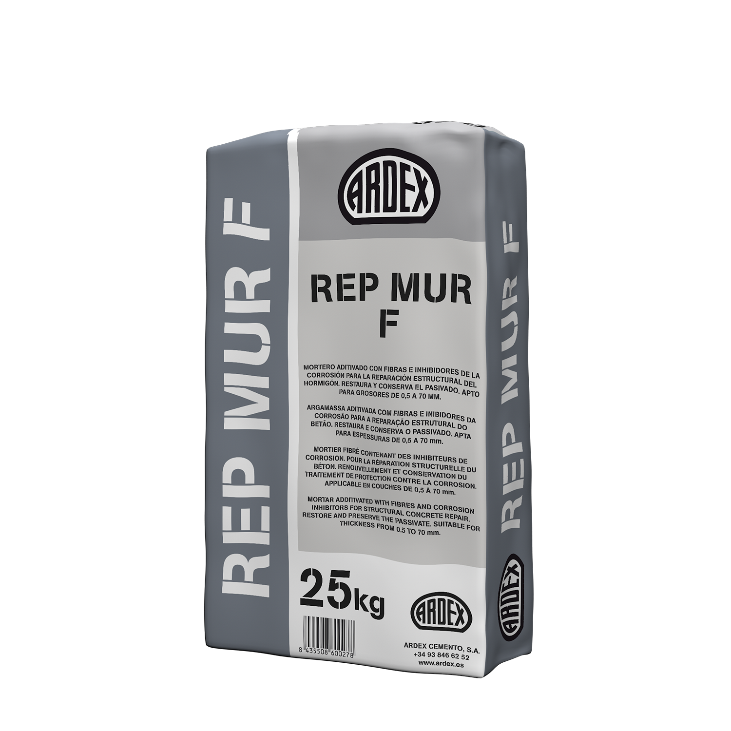 Mortero cementoso modificado con polímeros para reparación estructural de hormigón, con alta tixotropía, inhibidores de corrosión y retracción compensada.